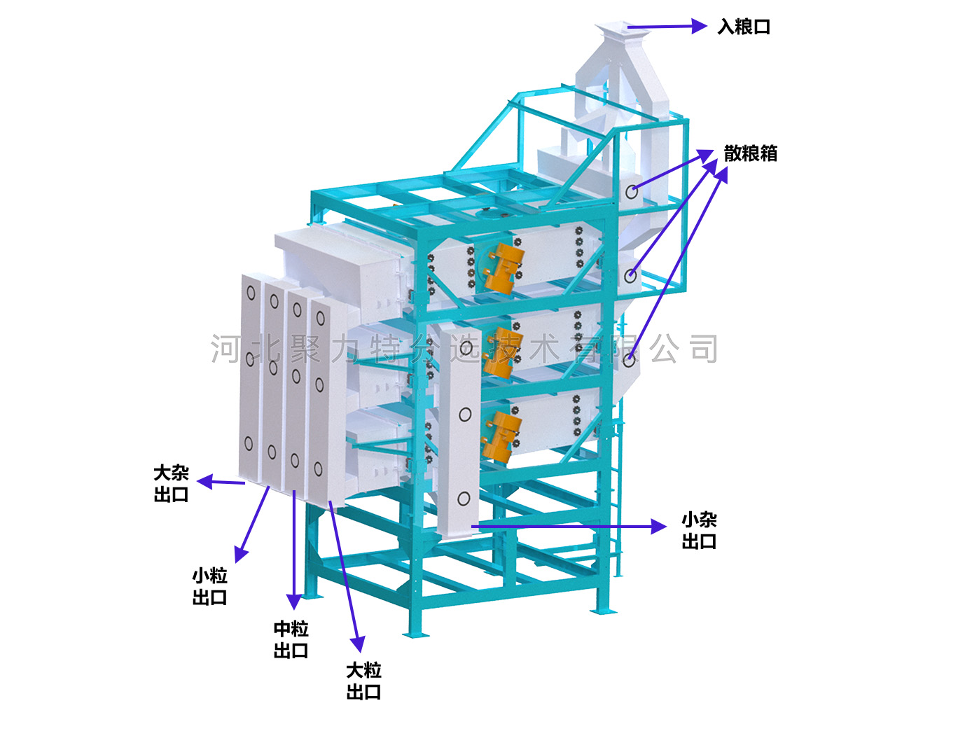 2、整機結(jié)構(gòu)緊湊,操作簡便,清機方便,能有效防止混雜;