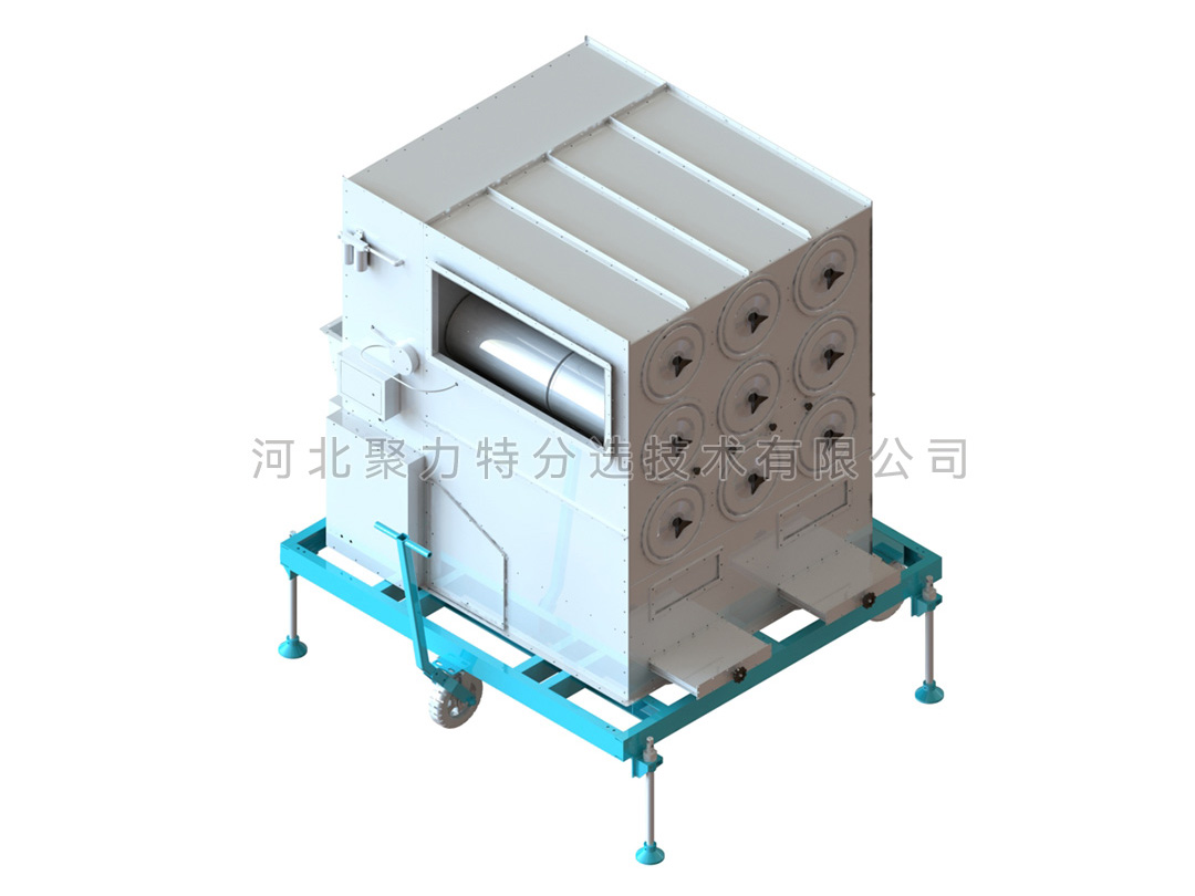 離心風(fēng)機(jī)吹出含塵氣流經(jīng)入風(fēng)口進(jìn)入脈沖除塵箱,由于除塵箱和外部風(fēng)壓差的存在,含塵氣流會(huì)迅速通過(guò)脈沖除塵箱內(nèi)3×3均布的9個(gè)濾筒后排入外部空氣中,氣流中的粉塵被阻擋在濾簡(jiǎn)外表面上,排入外部空氣中的則為過(guò)濾后的清潔空氣,最終完成含塵氣流的粉塵清除功能。脈沖噴吹控制儀接通脈沖電磁閥定期向?yàn)V筒內(nèi)部噴吹 0.6-0.8MPa 高壓空氣,高壓空氣由內(nèi)向外穿過(guò)濾筒,將附著在濾筒外表面上的粉塵除去,塵粒落入下部集塵斗,定期清理。